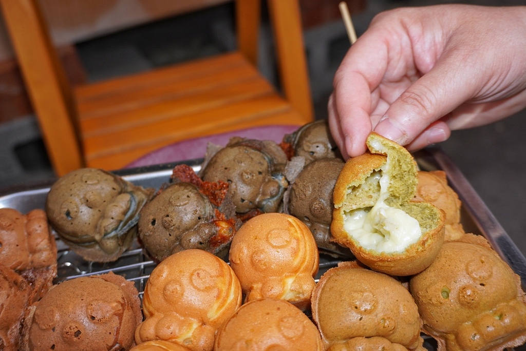 台中西屯美食<哇屋雞蛋糕>位於逢甲文華路的巷弄小道內,外皮有四款口味可挑選、內餡也可以自由搭配,現烤五分鐘就有熱呼呼美味可口的雞蛋糕了