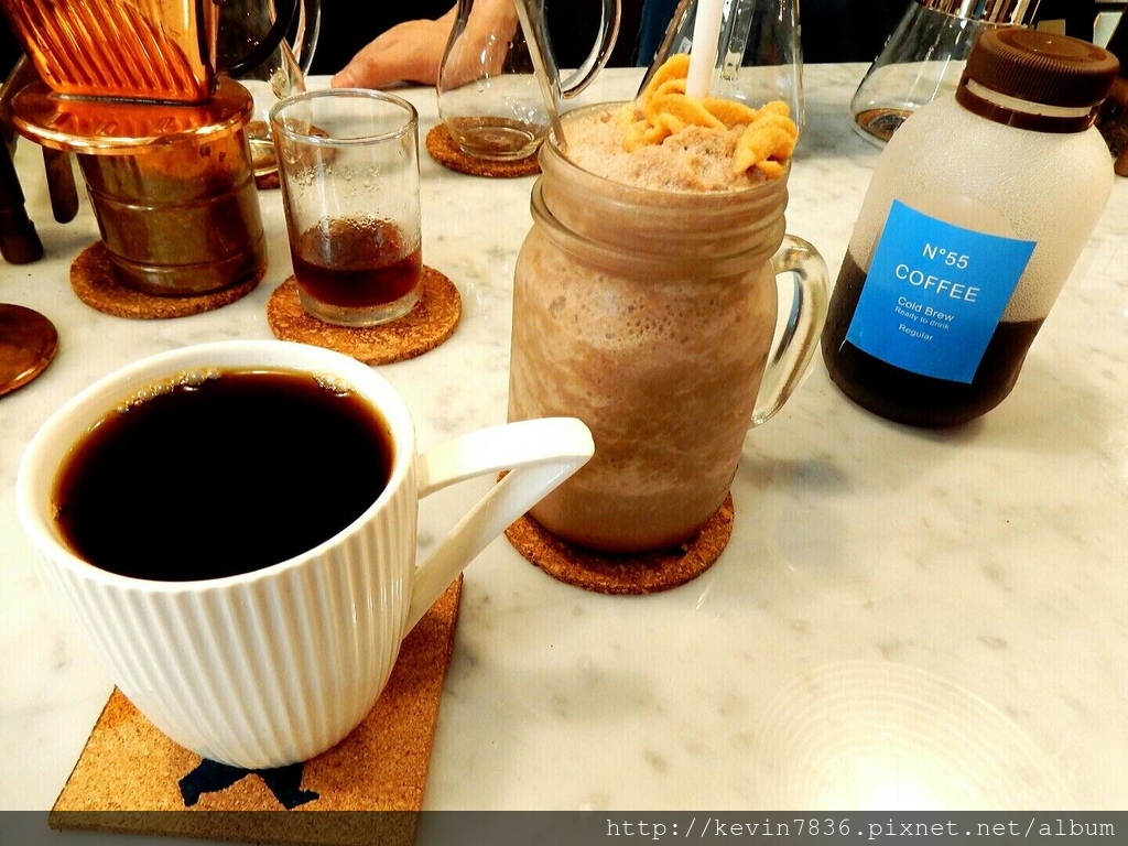 林口55號咖啡館有可樂果冰沙.阿里山咖啡還有甜點美食喔!!可樂果冰沙喝了讓梅子超驚豔的,口感實在太特別了,幸福啊!