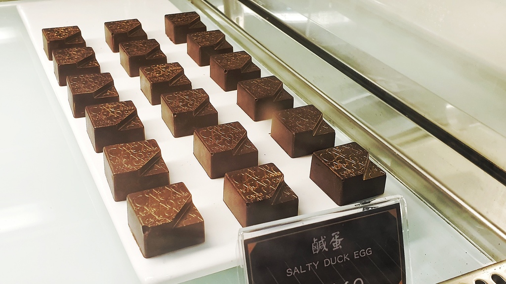 台南中西區甜點美食<阿信巧克力農場台南店>有多款不同風味的義式手工冰淇淋,造型具有特色手工巧克力,微苦微甜薄片巧克力,再搭配一杯熱可可茶,美味午茶時光好放鬆
