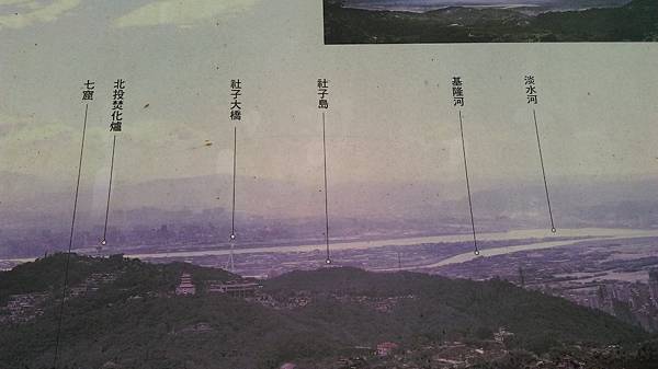 在這位置可以遠處看見基隆河與淡水河還有社子島等等,