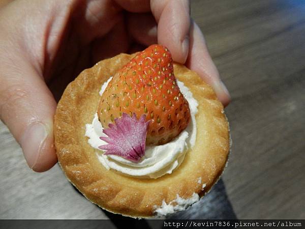 你們看這草莓塔,好好吃喲~草莓上還有花瓣喔…