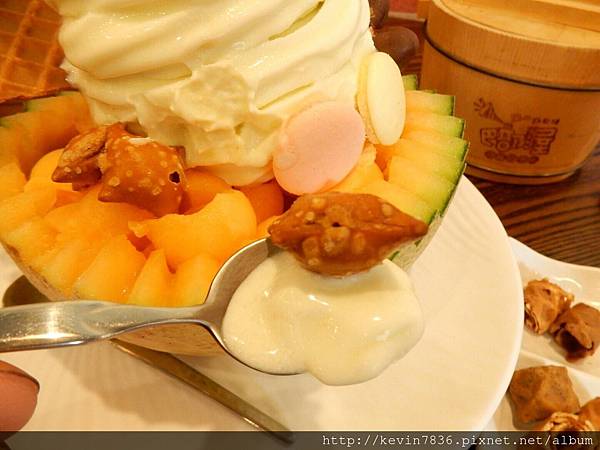老爺說:朋友們可以一口冰淇淋搭配一小球哈密瓜哦…這樣真的絕佳口感