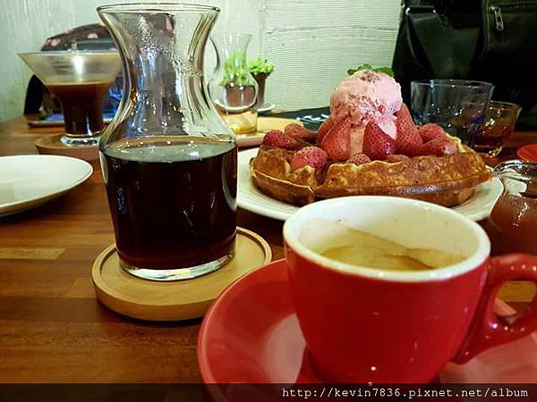 特色:店內裝演可愛風.冰手沖咖啡口感佳.甜點無論鬆餅或比利時鬆餅都好吃喔!!