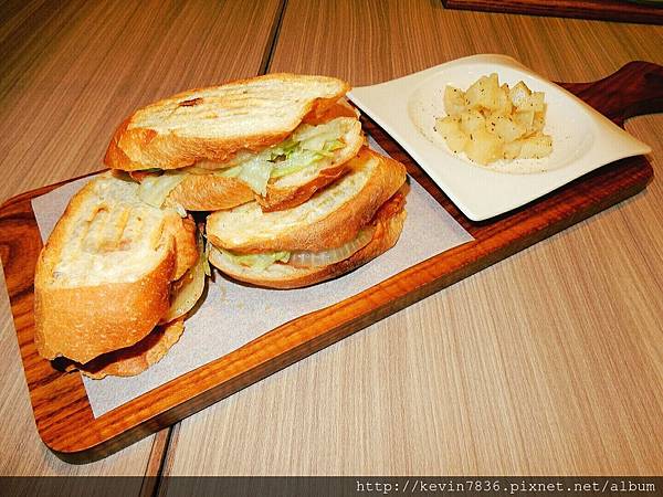 法國麵包很有嚼勁,裡面搭配著許多食蔬啊!吃起來不膩且清爽可口喔!