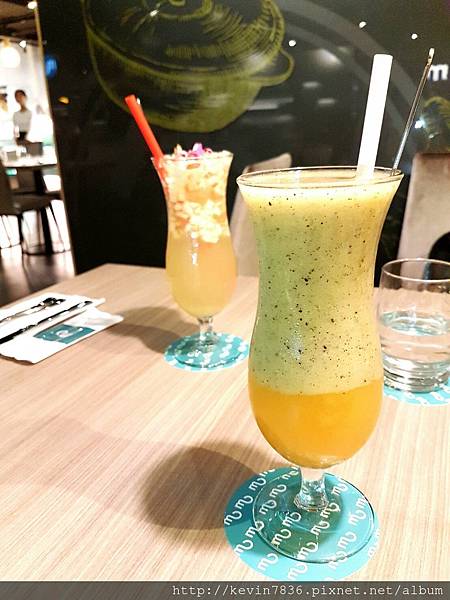 沒攪拌時會喝到兩種非常明顯的層次口感,有奇異果與柳橙濃厚的味道喔