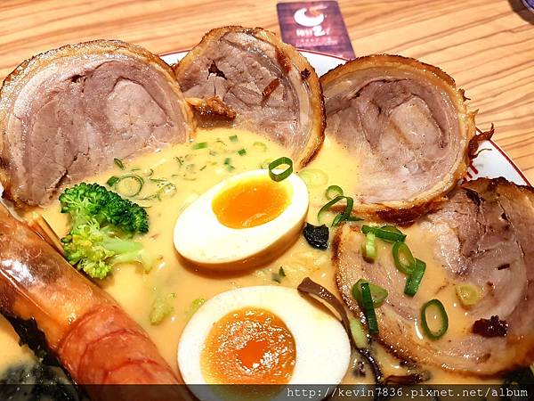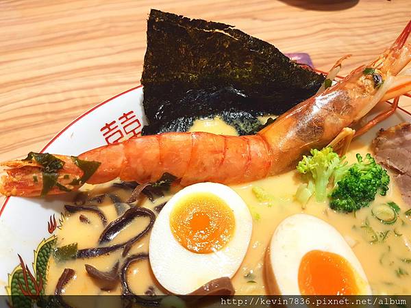 光叉燒肉片就四大片,還有整顆溏心蛋,天使紅蝦有夠讚,愛吃辣的朋友這碗太棒了