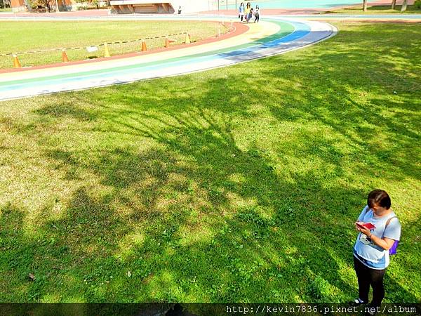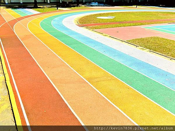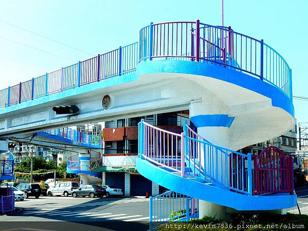 老爺還發現天橋唷!也太彩色亮眼了,真的好夢幻呀!這內新國小一整個就是美麗彩色的校園嘛!