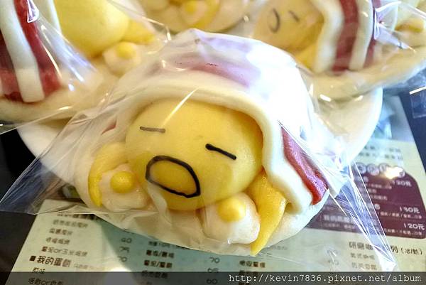 口感竟然不錯,蛋黃哥身上的棉被,梅子問了店員,原來是紅麴+南瓜做的,裡面沒有內餡唷!所以吃時,要慢慢吃喔!如果乾了點
