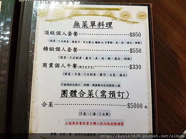 無菜單料理有商業個人午餐330元到精緻套餐550再到頂級個人套餐950元