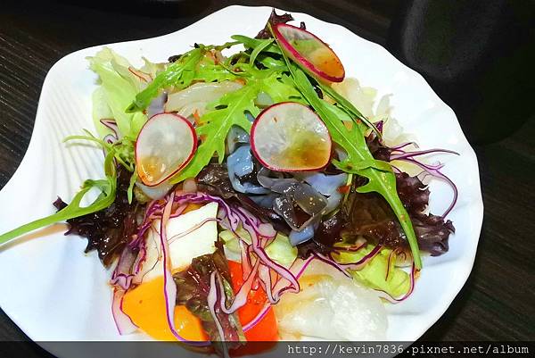 上面的是芝麻葉,光一盤沙拉,就滿滿誠意的料,我嘗了幾口,喜歡那超清爽的醬汁,還蠻不錯的