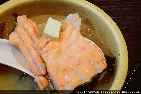 這鮭魚肚,吃得到特殊口感香氣,老闆使用獨家特調的醬汁,油脂豐富會在舌尖上跳舞,店員說:這鮭魚肚是老闆用新鮮