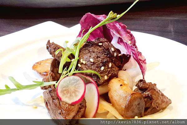 這牛肉吃起來好彈牙,每個骰子切得剛剛好,老爺還在拍它時,我在旁不時偷吃,骰子菲力很有汁,會讓人一直有偷吃的fu,美味