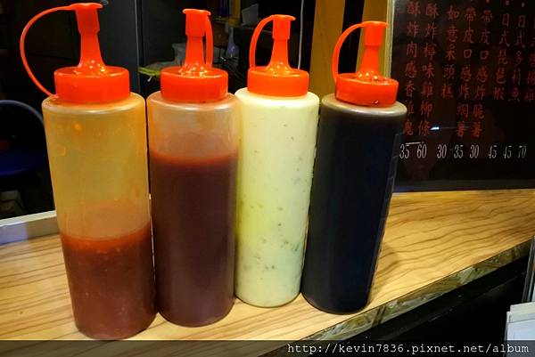 在熊御燒吃炸物,很貼心的店家,還會附上四種不同醬料,讓你自由搭配