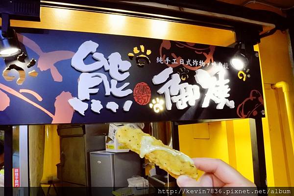 看見一個好可愛的攤位啊!很好奇,走,看看到底是賣什麼美食啦!就是炸物美食,點餐去