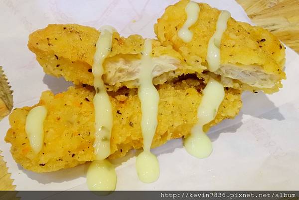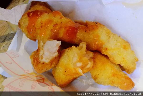 這酥炸檸味雞柳條,淋上塔塔醬,有種還蠻妙的新搭法,這時很不想逛街,想把這些炸物帶回家,配電視囉!邊追劇邊吃炸物最過癮了,