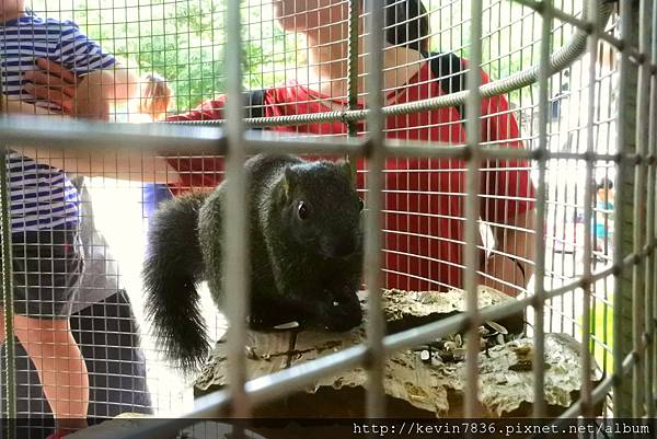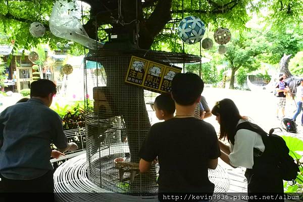 在紙箱故事館前的大樹,還可以餵松鼠,看看大家非常忙碌餵食,松鼠們看起來也都很開心地吃著