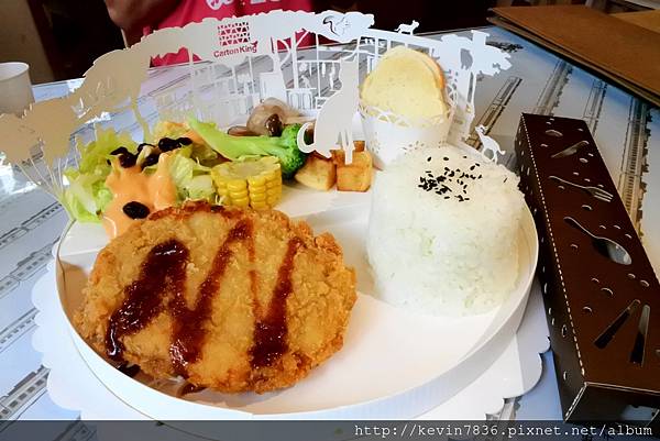 的餐點造型,除了造型亮眼外,口感也很不錯,像梅子點的這豬排,小鳥胃的梅子吃撐了,這豬排裡藏了滿滿餡料,真的扎實飽足感,