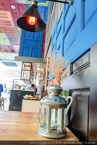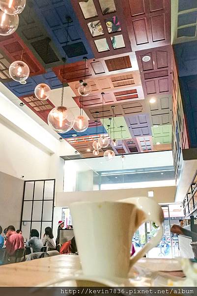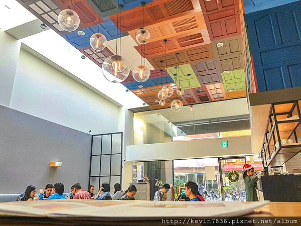 木門店內設計也很獨特,各式顏色的板透過巧思拼湊出亮麗繽紛的感覺,再加上充滿綠意盎然的一面牆,讓人彷彿來到戶外喝咖啡吃甜點的fu,這樣的視覺蠻享受的呀!梅子抬頭看著這些亮麗的布置後,心情也亮了起來.
