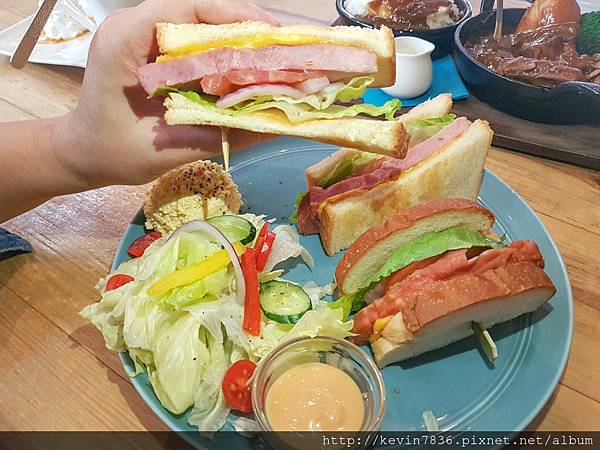 BBQ豬排三明治~這份量還蠻符合我家老爺的胃,這餐點對我而言,一看就飽了XD,老爺很喜歡這道餐點,他說:不僅分量十足,那豬排口感嫩嫩的,還有著洋蔥的香氣,搭配著蔬菜清爽極了,飽啊~~飽