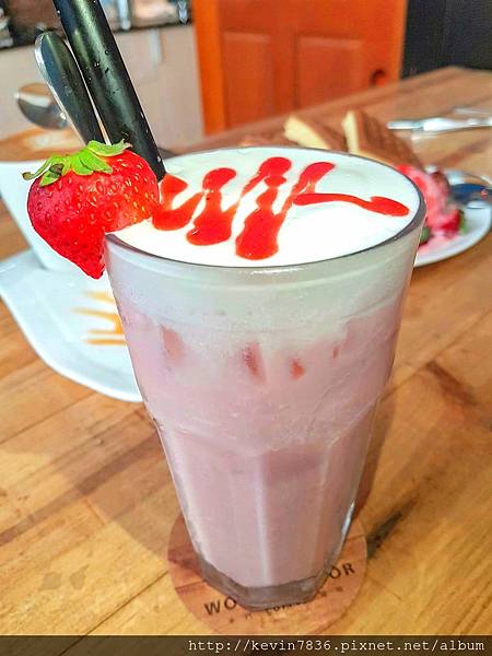鮮草莓歐蕾~這整個讓梅子少女心大爆發,滿滿草莓大口大口咕嚕咕嚕好好喝唷!梅子還不停的與他拍照,老爺喝一口,他不愛那甜甜口感,然後豪邁地說:整杯都給你喝,我不會跟你搶,我的心情開心極了.