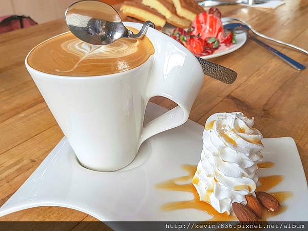 海鹽焦糖拿鐵~整個設計很有氣質感,讓人很想一小口一小口品嘗咖啡與奶油的結合口感,但殊不知砸門家老爺大口大口喝著他,問他口感,老爺一副聞著拿鐵香外,大口喝著手裡的拿鐵,一直嗯嗯嗯的回應,好奇的梅子忍不住打破沉默,到底好喝嗎?不要在賣我關子了,老爺忽然開口,都喝一大半了,你覺得呢?哈哈!好吧好吧!我們繼續往下看