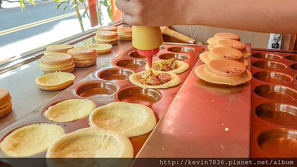 哇!梅子點的德式香腸,看看這餡料讓人光看就想流口水,站在攤車前都會聞到一陣陣紅豆餅香氣