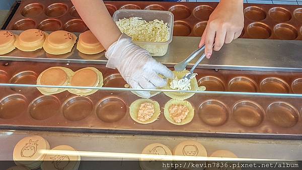 紅豆餅上有龍貓圖案超可愛的,一顆顆飽滿的紅豆餅一一出爐啦!