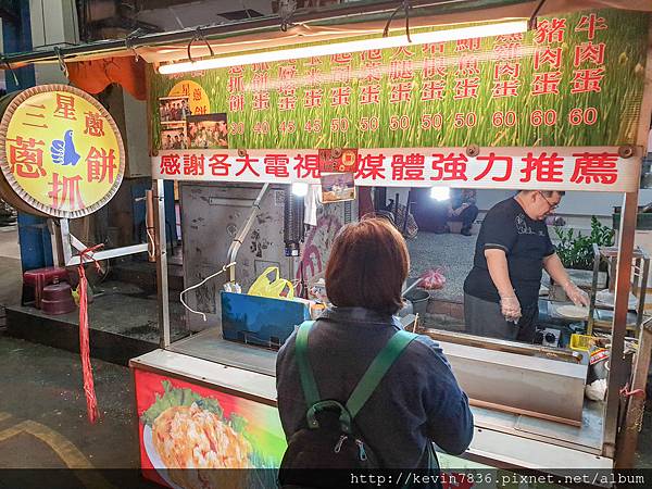 吃完了臭薯條,大約八分飽了,但梅子還有個口袋名單,就是宜蘭蔥抓餅,邊走邊逛來到這原昌三星蔥抓餅,MENU就在攤車上方