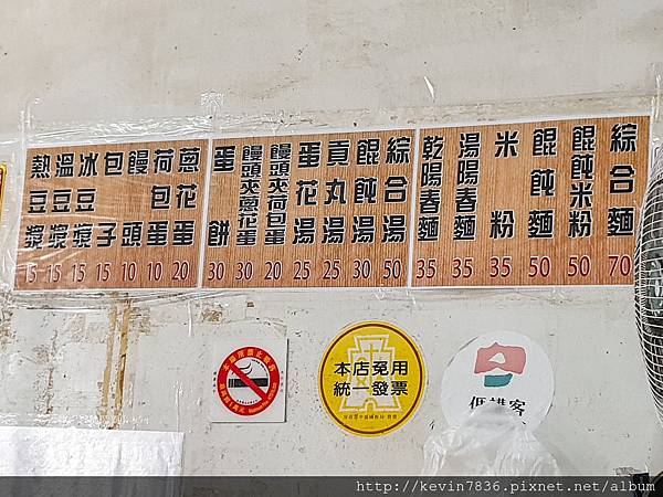 阿土豆漿大王的MENU:有乾陽春麵.米粉.餛飩麵.蔥花蛋.蛋餅.饅頭.包子.冰豆漿等等,價位從10元到70元之間,可說是銅板美食