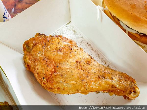 雞腿:淺嘗幾口後,喜愛那雞腿外皮香酥脆的口感,肉質多汁軟嫩,讓人一口接一口不知覺得就吃光光了
