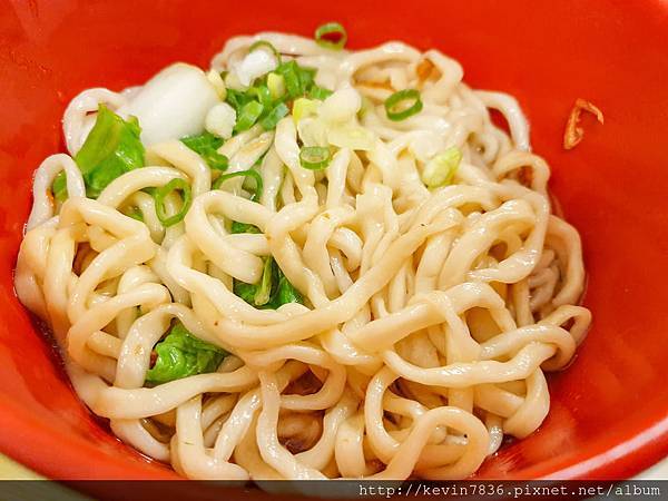 陽春麵(乾): 吃麵時,舀了桌上一匙店家自製的辣椒醬,與乾麵一起攪拌攪拌,大大吃了一口,喜歡麵香很Q彈,不會過油膩,真的讓人喜歡大口吃乾麵