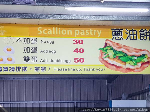 黃記蔥油餅位在台東海濱公園旁,一間不大的鐵皮屋,MENU在這裡,品項很簡單只有三樣,不加蛋.加蛋.雙蛋,銅板美食