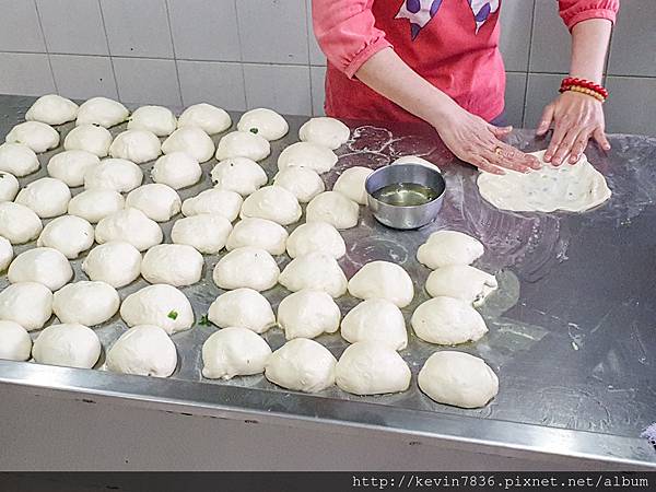 黃記蔥油餅現點現做,需要耐心等待,看看餅皮裡的餡料,蔥花與九層塔超多的,香氣一直撲鼻而來,老爺在旁邊已經開始期待他的美味點心了