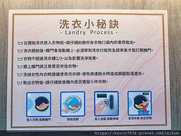 梅子製作了一個簡單短影片,讓大家更清楚洗衣小步驟:1.衣服放好2.門把切記關緊3.投完硬幣或Line pay 4.添加洗滌劑5.按啟動(流程結束後,在一旁喝茶等待了)