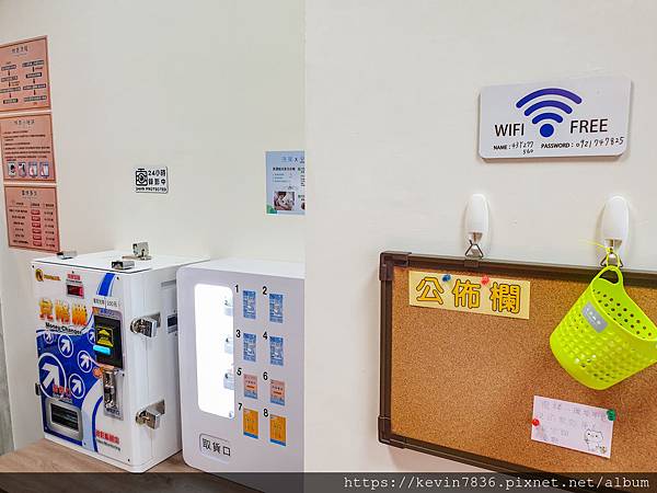 兌幣機旁邊還提供洗衣劑等項目,旁邊還有公佈欄(有什麼想留言想感謝想提供意見都可貼在這公佈欄上),還有免費wifi唷!