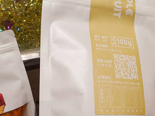 看看後面包裝上,還清楚標示保存期限,營養標示與訂購地址,還有客服QR碼,從嚴選果乾品質到包裝上一目了然清楚標示,難怪同事強力推薦