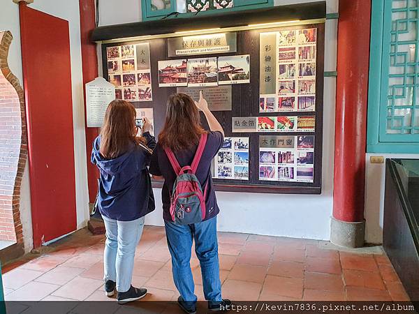 與好友兩人,欣賞赤崁樓保存與維護經過,從彩繪油漆到貼金箔等,都有詳細記錄還有圖文說明唷!