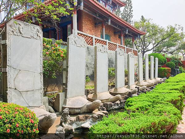 這天早晨風和日麗好天氣,和風煦煦吹來,走到庭院時,發現赤崁樓庭院中的九座龜碑,讓我們停下腳步欣賞