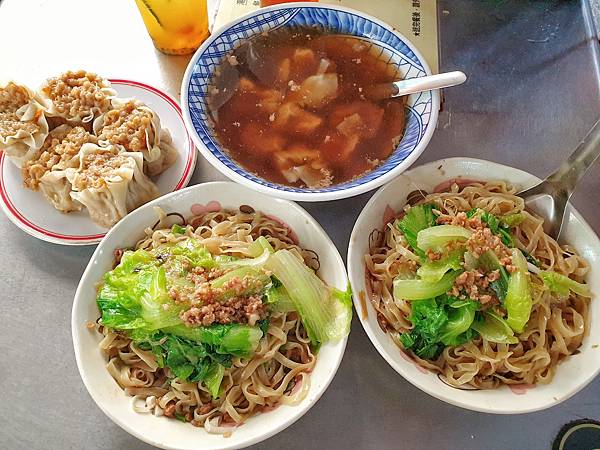 桌上餐點有:乾意麵.餛飩湯.燒賣,我們準備開動了