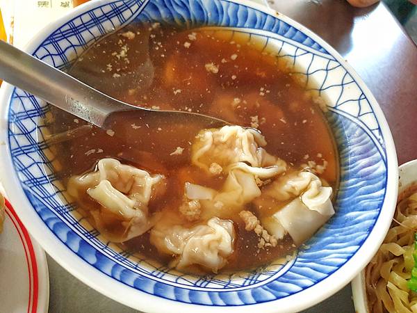 餛飩湯~梅子舀起一匙餛飩湯裡的餛飩還不少顆,只是湯頭表現的比較平淡點,其實,梅子來到高家意麵就只是來品嘗回味學生時期的餐點,想念一下這古早味美食的滋味唷!