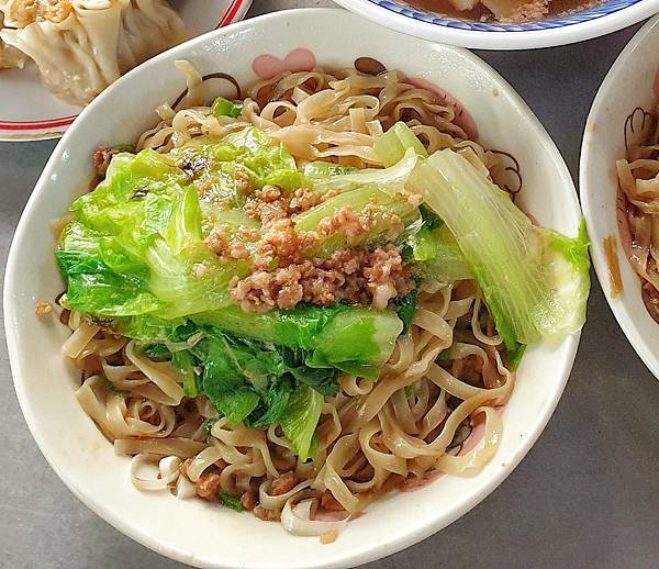 乾意麵~意麵麵條吃起來很Q彈,搭配著微鹹香肉燥,與豐富的配菜,讓人覺得清爽不膩口。