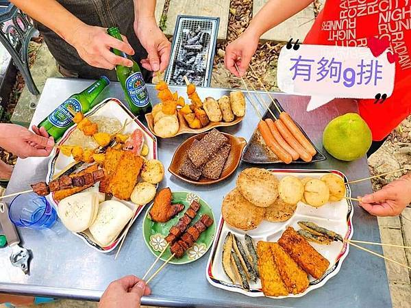 素烤金牌組合DM總共有九款食材:熱狗.甜不辣.豆干.天貝.Q糕.米包.g排.柳葉魚.菇g,那就讓我們開始烤肉了,等待我們烤完且品嚐過後,再跟大家一起分享我們的心得囉…