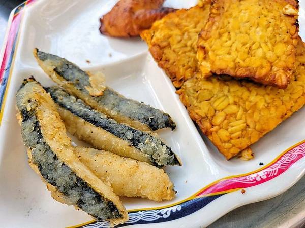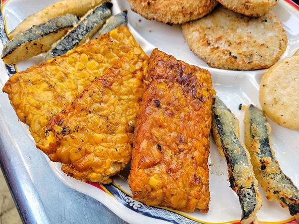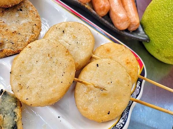 甜不辣~當老爺一口咬下去時,發現這甜不辣很特別,原來是蒟蒻做的,低卡.Q彈口感,不膩口。