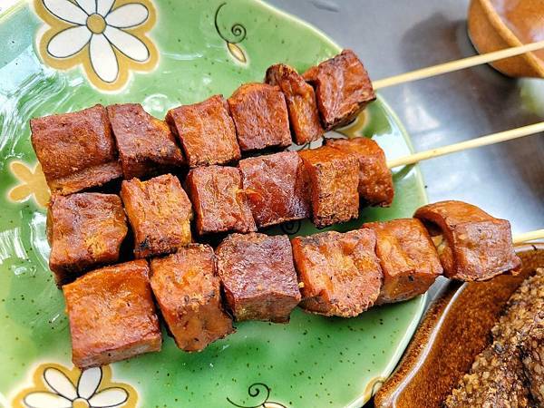 Q糕 ~哇!素食的Q糕讓我們倆蠻驚豔的,慢慢咀嚼時有糯米口感.Q彈不黏牙,比一般米血更香很唰嘴唷!