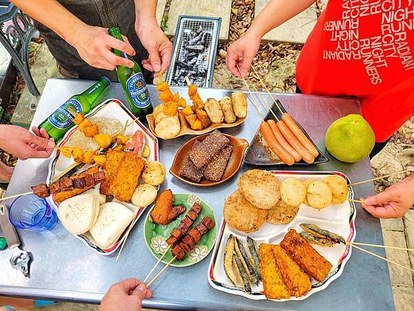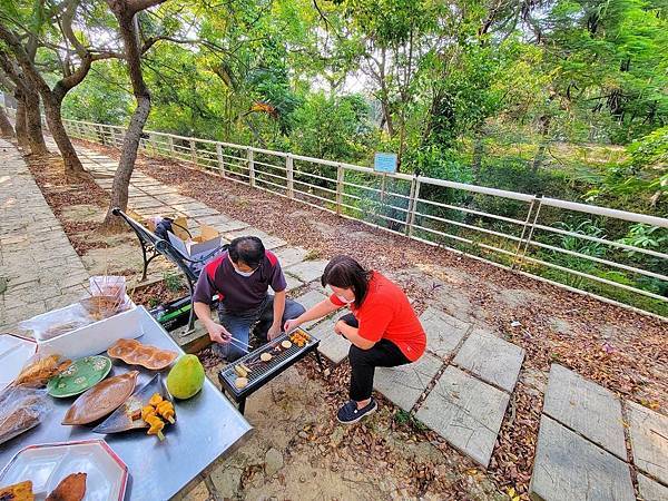 哇!原來友人口中的素烤金牌組合食材真的還蠻豐盛,老爺還說:連刷醬也都幫我們刷好了,烤肉也可以這麼便利啊…,幸好,梅子沒有準備太多葷食,不然,整場小型烤肉結束後,應該飽到天靈蓋,就這樣在微微涼風吹佛下烤肉還蠻舒服,因為,疫情關係讓我們與好友超久沒見面,趁著這次微解封好好聚聚話家常呀!