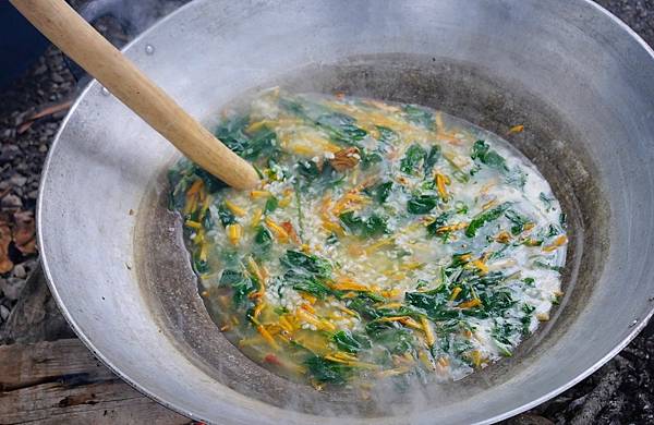 搖搖飯活動接近尾聲,老師讓我們每個人體驗自己盛搖搖飯的感覺(太特別了),我乎然不小心亂挖一點點,咱們家老爺可是很在意,直呼老師剛剛有說<燉飯只能盛自己前面的,這樣才不會出水,是是是,梅子立刻改善嘿!>我們倆很喜歡這次非常精彩又有意義的活動,這次搖搖飯(野菜燉飯)非常成功,野菜燉飯吃起來口感屬於比較清淡,但是,可以品嚐到多款野菜食材,別具有一番風味,友人分享他真的有將搖搖飯搭配豆腐乳一起品嚐,口感風味更佳,讓我們倆留下深刻難忘的印象