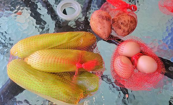 我們來到餐廳這裡集合,因為,中午雖然吃很飽,但經過活動後似乎又餓了,友人帶我們先來這裡補足一下小小餓的肚子,等等才能好好享受泡湯,我們也就發揮一下食量囉…有買地瓜、玉米、還有蛋,緊接著把採買好的食材,一個個放進溫泉煮蛋區開始煮了,友人比了牆上的烹煮時間,這也太貼心了,比如:玉米大約煮30分鐘、蛋大約8分鐘、地瓜大約40分鐘,我們就先到休息區聊天等待,時間到了,最開心的就是梅子,梅子加速腳步去關心煮好了沒,人家第一次煮溫泉蛋咩!先來拍照合影,看看我們玩得不亦樂乎