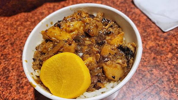 滷肉飯:梅子淺嚐幾口,發現魯肉飯口感很特別,香噴噴的手切滷肉是挑選三層肉,一口接一口滷肉飯吃起來肥而不膩的滷肉好可口,搭上老闆獨門配方,香氣四溢白飯上淋上一層誘人的滷汁,超唰嘴