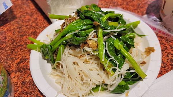 乾拌麵線:這盤乾拌麵線一上桌時,老闆還搭配滿滿青菜,老爺一口接一口吃起來喜歡獨特油蔥香氣,麵線不油膩,熱情的老闆描述這碗乾拌麵線做法,豬板油搭配油蔥酥,搭配店家特製醬汁,梅子也有吃到幾口,好吃