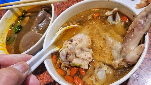 十全藥燉排骨:十全藥燉排骨,湯頭喝起來香氣濃郁,多層次口感,原來老闆選用多款中藥下去熬煮湯頭,數小時熬煮湯頭,排骨挑選豬肋排,那排骨一咬下去時,骨肉分離,肉質軟嫩,過年時,清境非常冷,來上一碗十全藥燉排骨喝起來挺不錯,這一碗好喝到讓我們倆搶食,哈